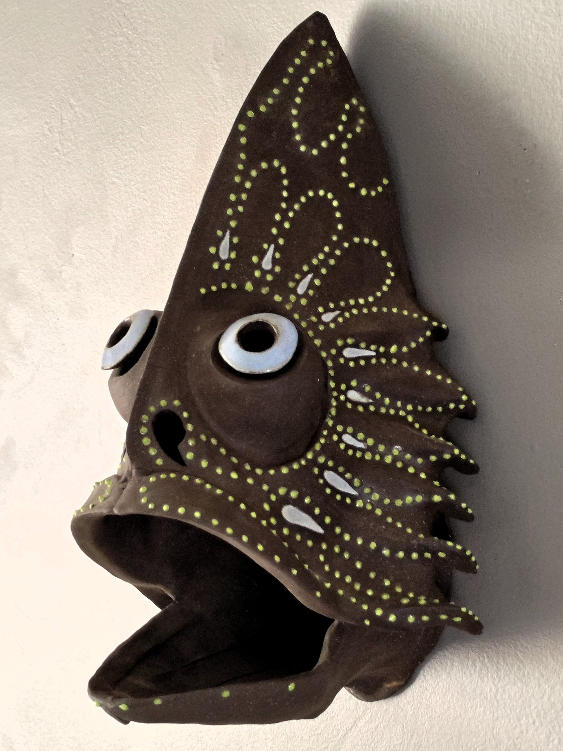 It came into being at the beginning of my “tame” ceramic journey in 2019-20. Before that I explored “wild” clay and made vessels and sculptures that were pit fired. I am currently incorporating wild clay as a surface colorant. Read more my journey with wild clay here. I am now incorporating wild clay as a slip colorant. I love the earthy pallette provided by unfired wild clays but unfortunately all of the blues, greens, and yellows change to oranges and reds when fired. Small additions of titanium oxide helps retain the yellows. I am still testing underglazes to replace the blue and green colors that disappear in firing.