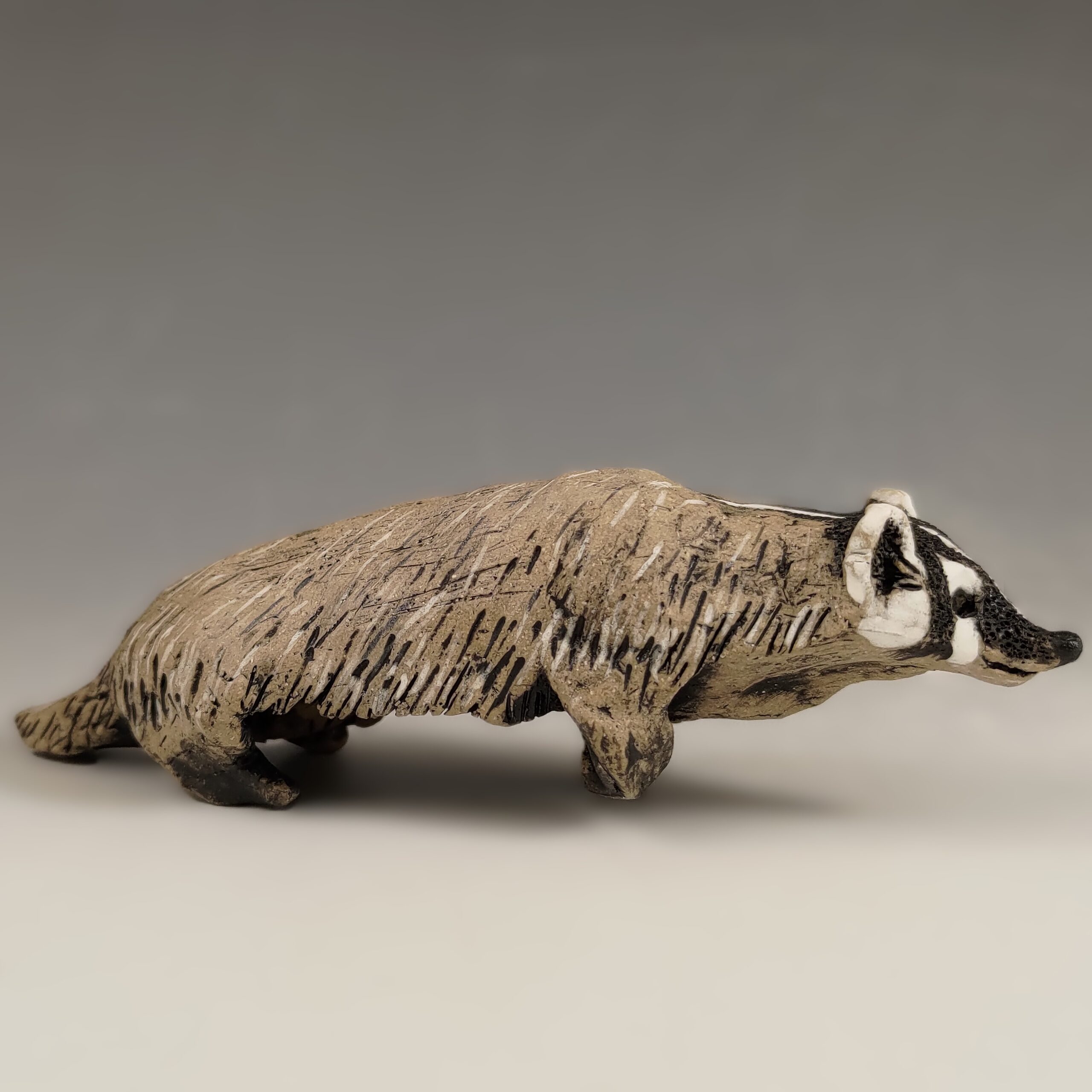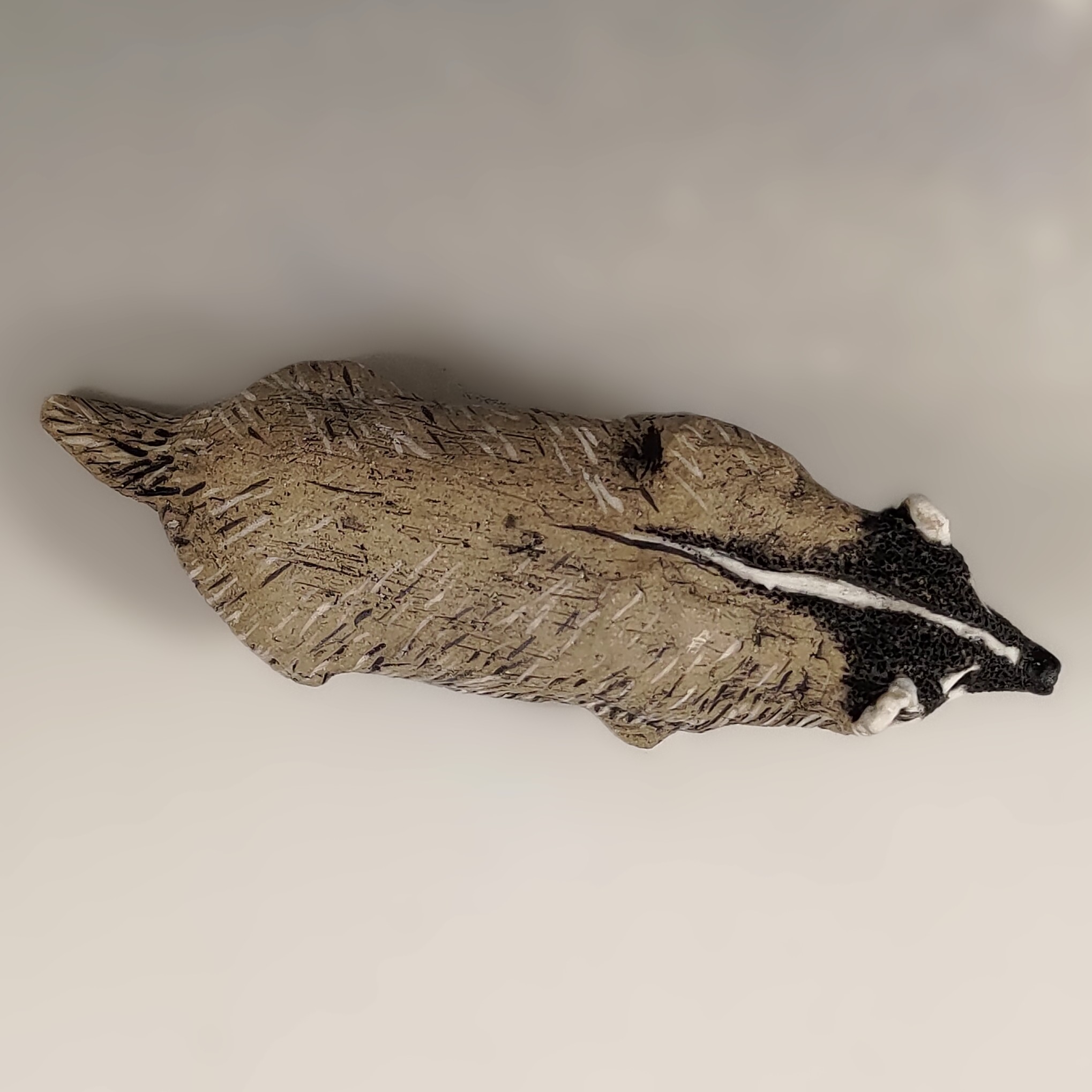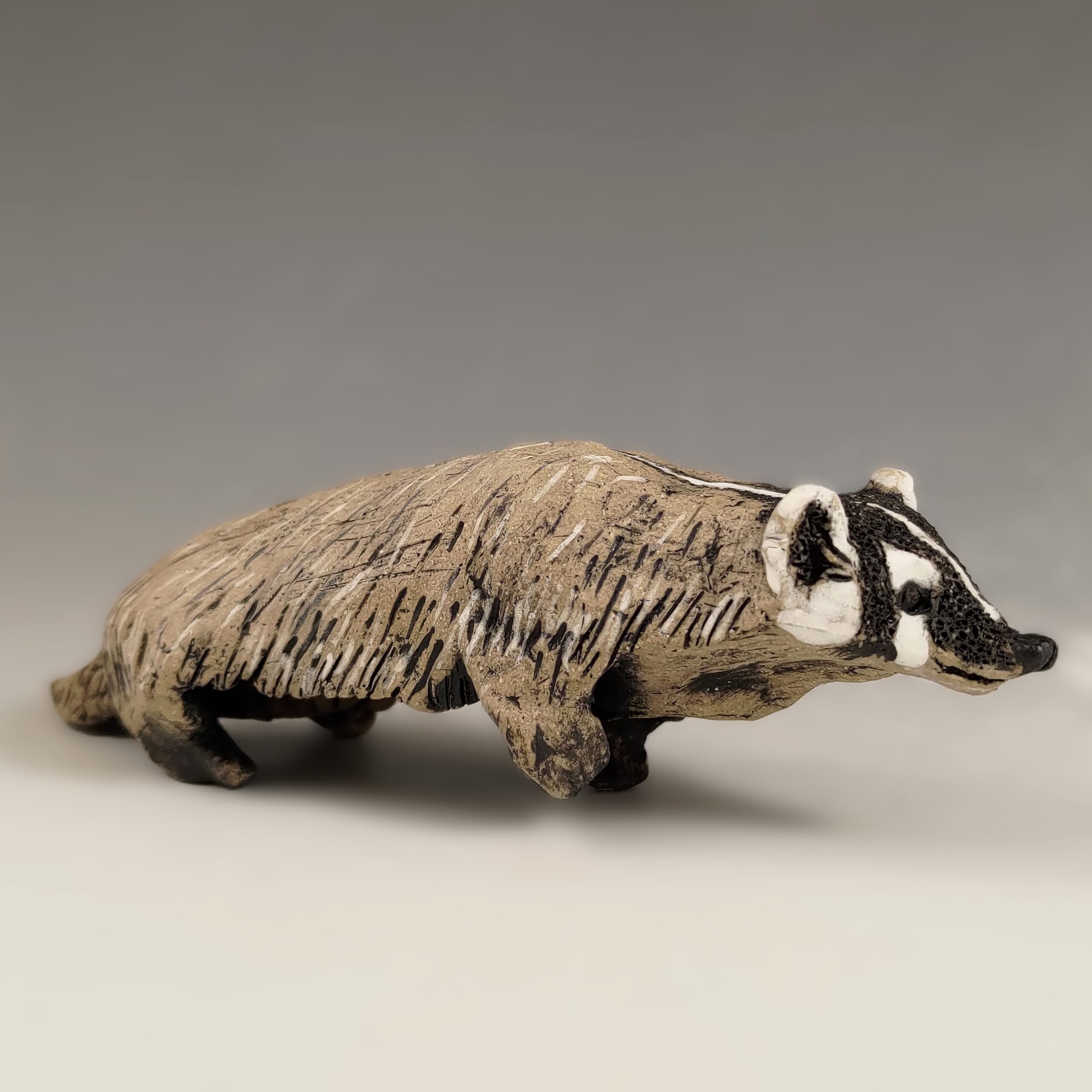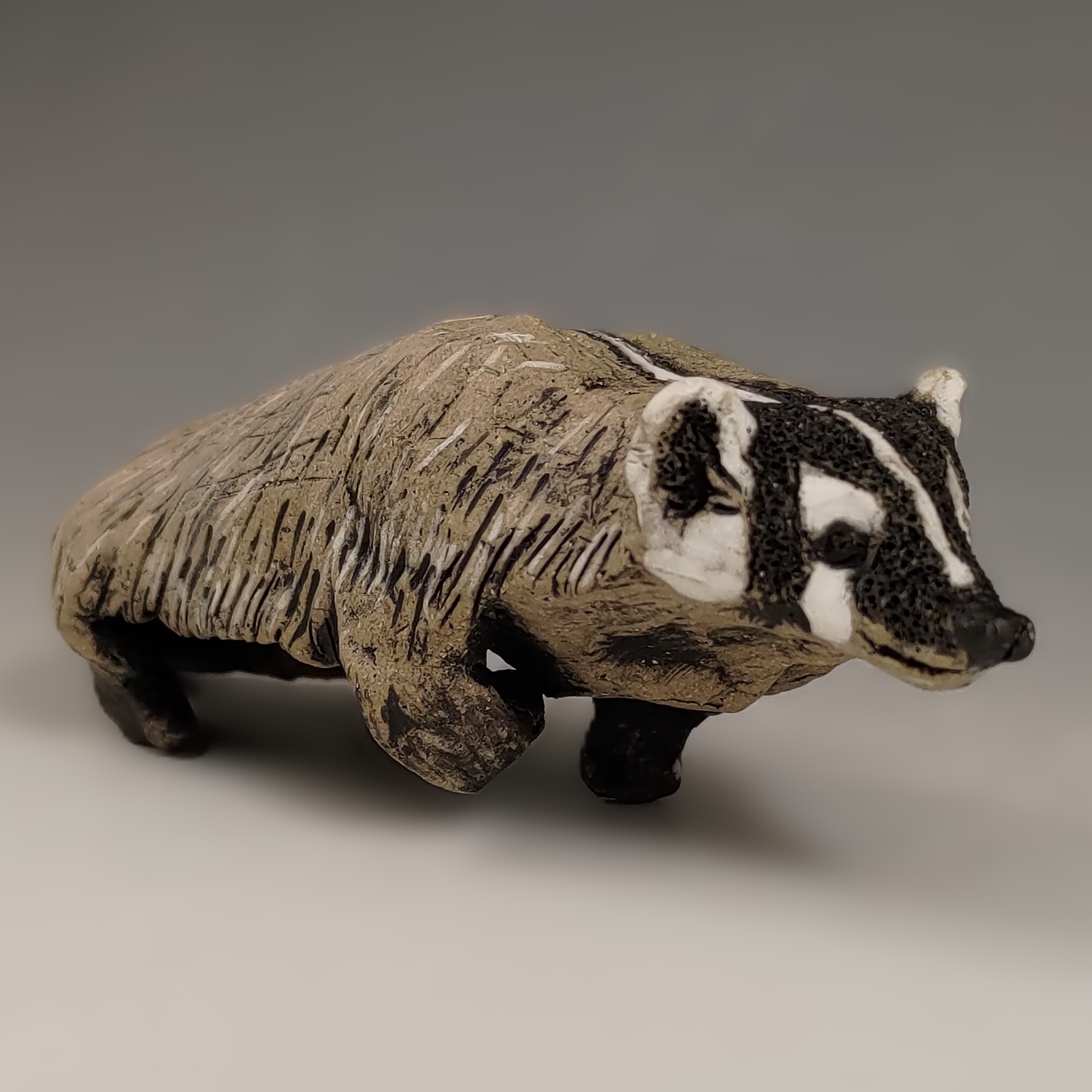 This fierce little guy is trotting along about his business. It is another creature that I will use my new gray clay with. They are oddly flat animals and are rarely seen when not hunched down. This is the first one I created.